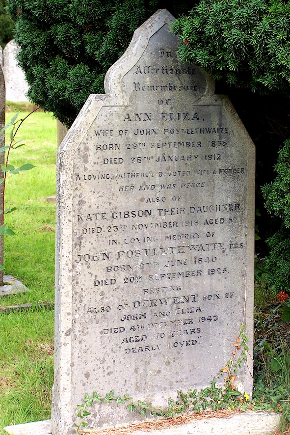 Gravestone, John Postlethwaite, geologist, d.1925