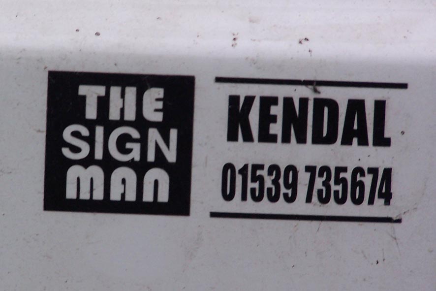 Signwriter's mark, The Sign Man, on Dunning's van.