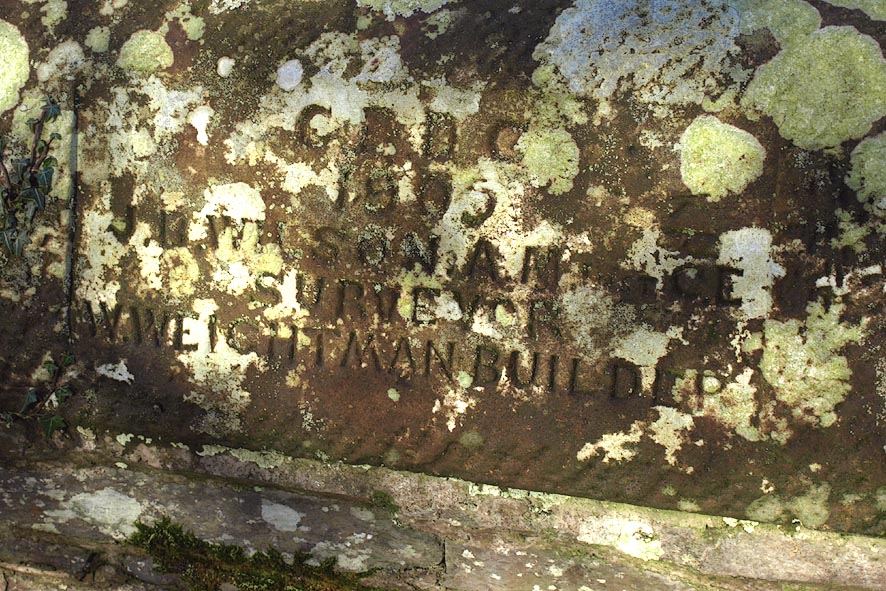 "C[R]DC / 190[5] / J. B. WILSON A.M.[ ]C.E. / SURVEYOR / W. WEIGHTMAN BUILDER" (photo 13.2.2008)
