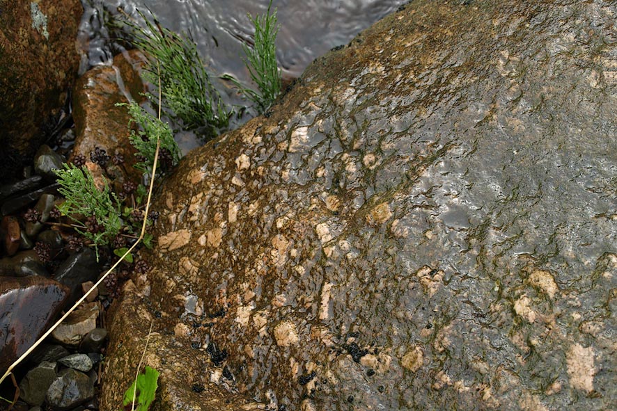 Shap granite in the stream bed at Wasdale Old Bridge,