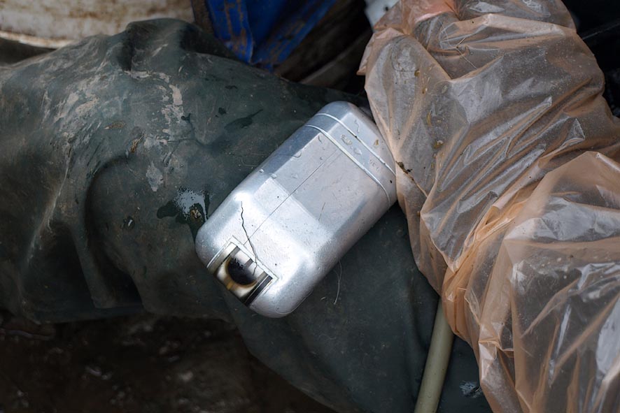 The scanner head, and a pink plastic armglove.