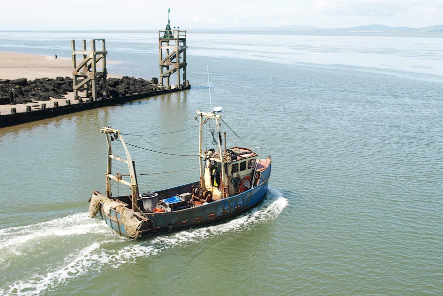 A fishing boat leaving.