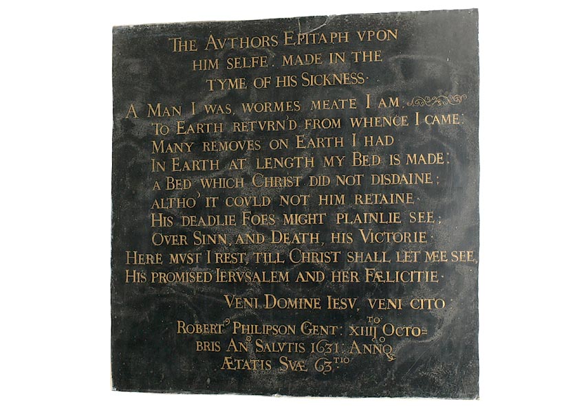 XIIIITO OCT= / BRIS AN' SALUTIS 1631: ANNO / AETATIS SUA 63TIO." (photo 18.9.2009)