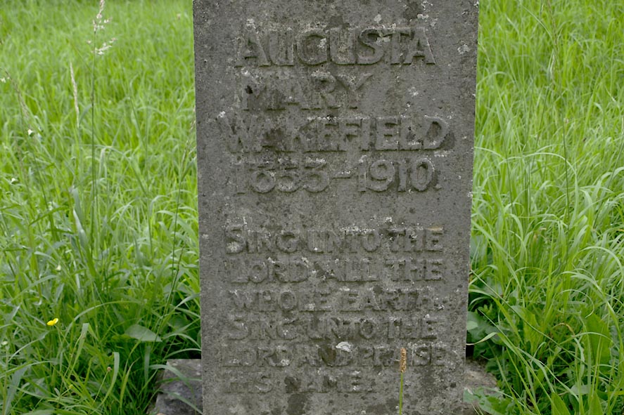 "AUGUSTA / MARY / WAKEFIELD / 1853-1910." "SING UNTO THE / LORD ALL THE / WHOLE EARTH. / SING UNTO THE / LORD AND PRAISE / HIS