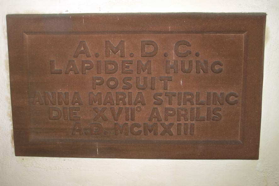 "A.M.D.C. / LAPIDEM HUNC / POSUIT / ANNA MARIA STIRLING / DIE XVIIo APRILIS / A.D. MCMXIII" (photo 8.10.2010)