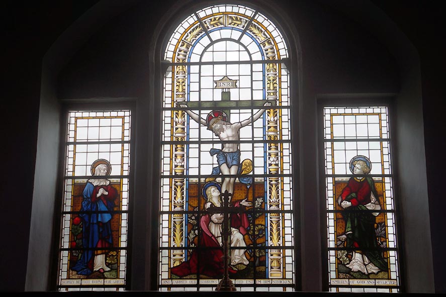 Stained glass, east window; the Crucifixion, by Clayton and Bell, about 1887.