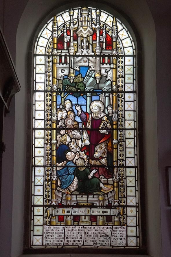 Stained glass; Paul preaching in Athens, by Clayton and Bell.