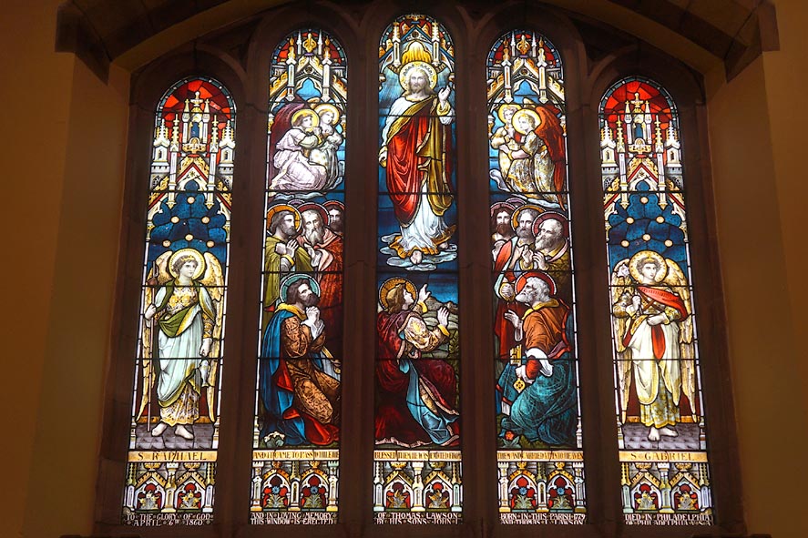 Stained glass, east window; The Ascension, by Cox, Sons and Buckley, 1886.