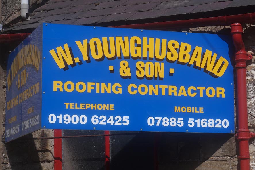 "W. YOUNGHUSBAND / & SON / ROOFING CONTRACTOR / ..." (photo 10.5.2017)
