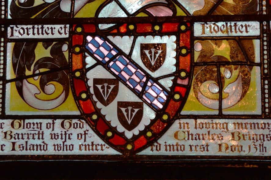 Stained glass; coat of arms, Ann Barrett wife of Charles Briggs, Holme Island, d.1899