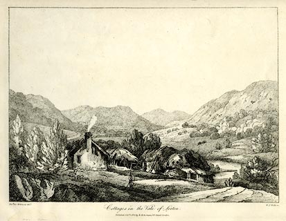 | source data:- | Print, uncoloured soft ground etching, Cottages in the Vale of Lorton, Cumberland,
