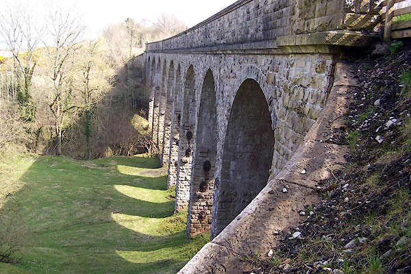 | source data:- | courtesy of English Heritage "Railway viaduct. 1861 for the South Durham and Lancashire Union Railway, engineer (Sir) Thomas Bouch, contractors Chambers and Hilton. Rock faced limestone rubble. Nine spans, 110m long and up to 24m high. Cornice, tall parapets. The South Durham and Lancashire Union Railway opened in 1863, by which time it was already a part of the Stockton and Darlington Railway. The Stockton and Darlington Railway itself amalgamated with the North Eastern Railway in 1863. It was opened as single track line and was doubled in 1889. It was closed in 1965 when all the large metal viaducts were demolished leaving the four masonry ones. Ref: ed. Jack Simmons, Rail 150 The Stockton and Darlington Railway and what followed, Eyre Methuen, 1975, p.30." |