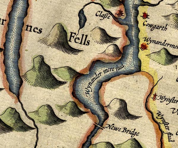 by Augustinus Ryther, 1576, published 1579-1645.![]() Sax9SD38.jpg "New bridge" Over River Leven at foot of Windermere. item:- private collection : 2 Image © see bottom of page |