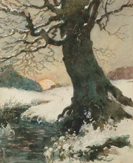 about 1904. click to enlargePR1297.jpg Tree beside a river bank surrounded in snow with sunset behind. item:- Tullie House Museum : 1978.109.1 Image © Tullie House Museum |