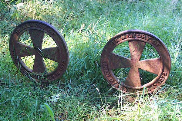 ![]() BML77.jpg Two cast iron 'grave stones' made by Haden of Warmintser, Wiltshire, 1872. On the left is:- "IN MEMORY OF JOHN DYER DIED JAN 16 1872" On the back is:- "HADEN [WARMINSTER]" (taken 3.8.2006) ![]() BML78.jpg And on the right:- "IN MEMORY OF SARAH DYER DIED JAN 17 1872" (taken 3.8.2006) |