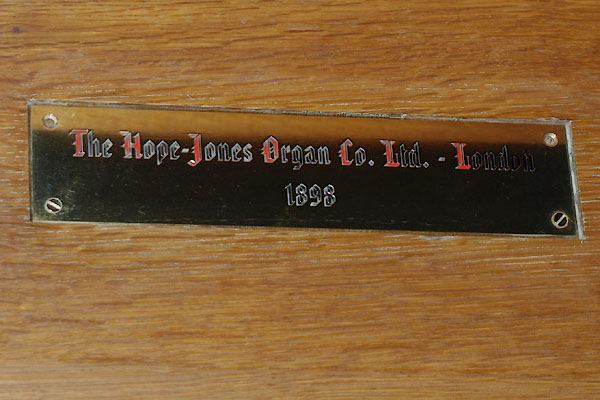 The organ was originally built by the Hope-Jones Organ C, London, 1898. It was controlled