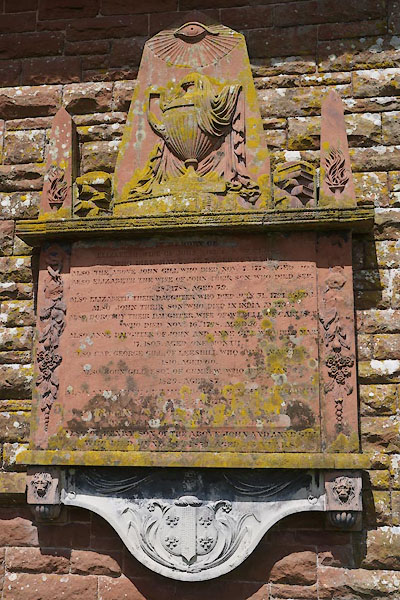 | source data:- | courtesy of English Heritage "Church. Dated 1890 over entrance, on medieval site, by George Dale Oliver. Rock faced red sandstone with ashlar dressings and angle buttresses; graduated green slate roof with coped gables and decorative ridge tiles. 3-storey north- west tower/porch; 3-bay nave; single-bay chancel with north vestry. Square tower has plank doors with trefoil arch in pointed moulded recess, pointed hood mould. Pointed and square lancet windows with louvred bell openings; corbelled and battlemented parapet; projecting stair turret in angle between nave and tower. Nave has 2-light lancet windows with trefoil heads; 4-light west window with trefoil heads and plate tracery. Chancel has similar 2-light windows and east window similar to west window; external wall plaque from the original church, to members of the Gill family 1767-1871. Interior has open timber roof to nave and chancel. Furnishings and fittings all early C20. Stained glass in east and 3 other windows is of 1890 and unsigned. Effigy grave slab beside pulpit, thought to be Jeanne, wife of William Dacre, early C14. Pulpit and font are inscribed and dated 1890. Pre-reformation inscribed bell; one of 1750 and other bell is dated 1901 by inscribed brass plaque on church wall." |
