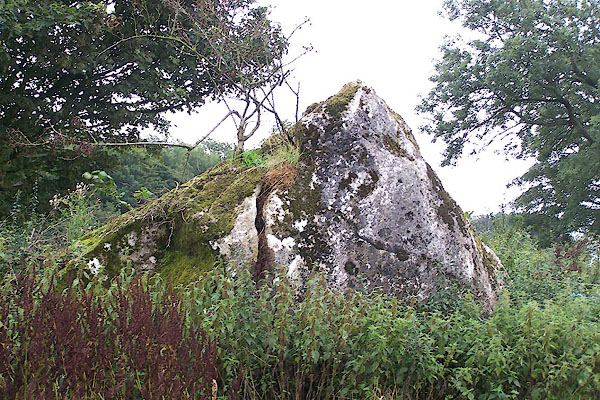 | source data:- | HP01p094.txt Page 94:- "... a huge granite crag, called from time immemorial "the Buckstone," stands in the hedgerow and recalls the trials of travellers in a bygone age, when roads were little better than winding tracks and sign-posts did not exist. They went, those palpitating travellers, as directed, "past the Buckstone," standing for centuries as sure a landmark as anything in this countryside. And now it is forgotten, except by the farming and field-folk and those whose business or pleasure is in the byways and hedges. ..." "..." HP01p097.txt Page 97:- "..." click to enlargeHP0103.jpg "THE BUCKSTONE." "..." item:- JandMN : 1055.4 Image © see bottom of page |