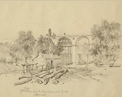 | source data:- | Drawing, Gelt Bridge Looking up the River, Newcastle and Carlisle Railway, Hayton,