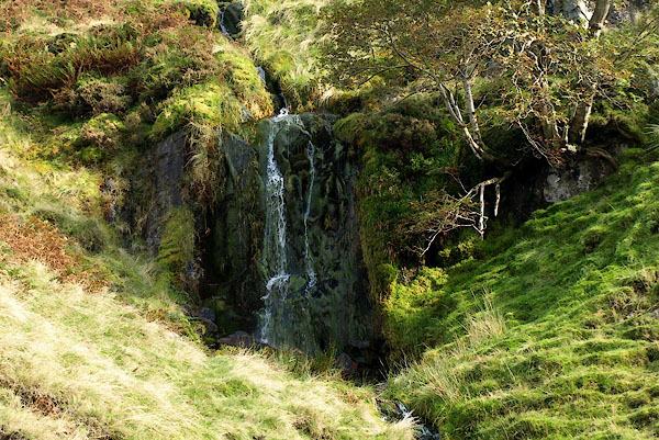 | The unnamed stream exposes Skiddaw Group mudstones which have been slightly metamorphosed