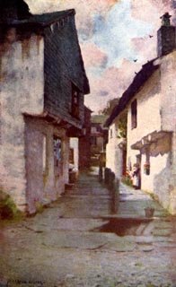Black, London, 2nd edn 1908. click to enlargeHC0117.jpg Opposite p.52 of The English Lakes, painted by Alfred Heaton Cooper, described by William T Palmer. printed at tissue opposite the print:- "AN OLD STREET IN HAWKSHEAD" item:- JandMN : 468.17 Image © see bottom of page |
