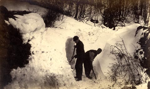 | source data:- | Photograph, sepia, clearing snow on the way to Strawberry Bank, Ambleside, Westmorland,