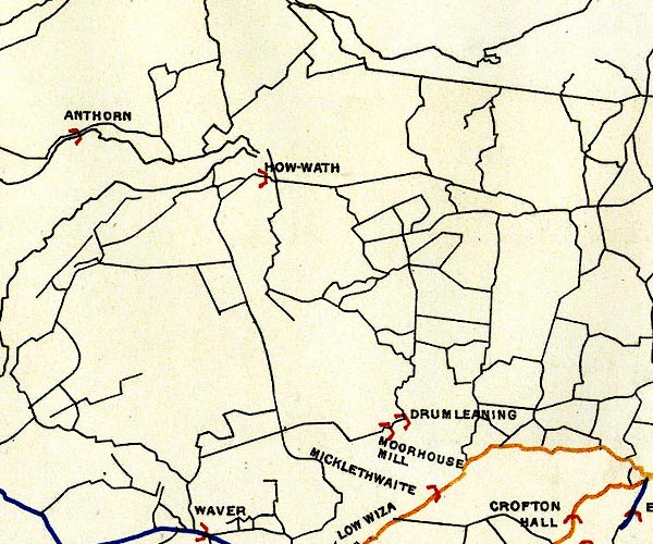 Thurnam and Sons, Carlisle, Cumberland, 1892.![]() BEL9NY25.jpg "DRUM LEANING" bridge symbol Road map of Cumberland showing County Bridges item:- Carlisle Library : Map 38 Image © Carlisle Library |