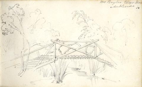 | source data:- | Drawing, pencil, rustic footbridge, Eller Howe, Ambleside, Westmorland, by Theophilus