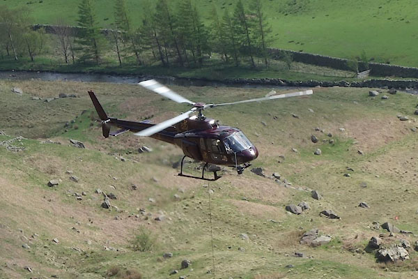 Dumpy bags of rock being airlifted to the track to repair the erosion of many many