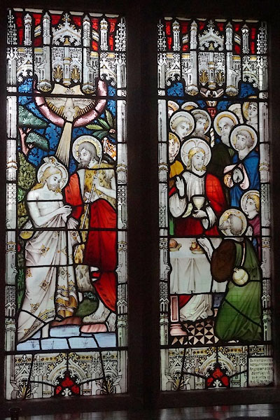 ![]() CFZ75.jpg Stained glass; Baptism of Christ, The Last Supper; by G J Baguley, 1903. (taken 28.4.2017) |