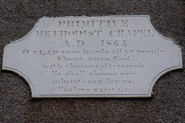 ![]() CFI82.jpg (taken 12.8.2016) ![]() CFI83.jpg Plaque saved from the chapel:- "PRIMITIVE / METHODIST CHAPEL / A.D 1863 / ..." (taken 12.8.2016) |