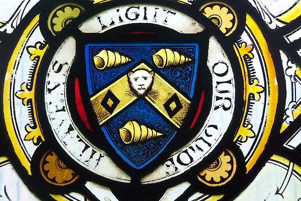 | St Lawrence, Crosby Ravensworth: stained glass - coats of arms | ||