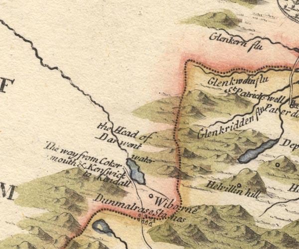 Bowles, London, 1760.![]() BO18NY20.jpg "Helvillon Hill" hill hachuring, on county boundary Westmorland Cumberland item:- Armitt Library : 2008.14.10 Image © see bottom of page |