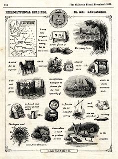 in The Children's Friend, by S W Partridge and Co, London, 1 November 1869. click to enlargeM077.jpg "HIEROGLYPHICAL READINGS. No.XXI. LANCASHIRE." item:- JandMN : 422 Image © see bottom of page |