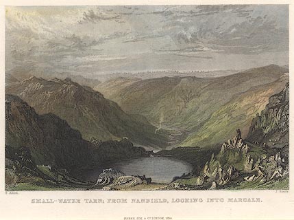 source data:-   Print, hand coloured engraving, Small Water Tarn, from Nanbield, Looking into Mardale, Westmorland, by Thomas Allom, engraved by J Sands, 1834.