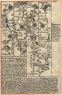 Fleet Street, London, 1719. click to enlargeSEN5M5.jpg Plate 96 in An Actual Survey of all the Principal Roads of England and Wales. printed at plain cartouche, upper centre:- "The Roads from / KENDAL in WESTMOREL: to COCKERMOUTH / EGREMOND to CARLISLE in CUMBERLAND. / The first commencing at Kendal & so to / Stanley 5 / Amleside 13¼ / Keswick 29½ / Cockermouth 44 / The second commencing at Egremond & so to / Winnick 6¼ / Cockermouth 14¼ / Bowland 21 / Thursby 33¼ / CARLISLE 39¼" printed at bottom right:- "96" item:- private collection : 272.5 Image © see bottom of page |