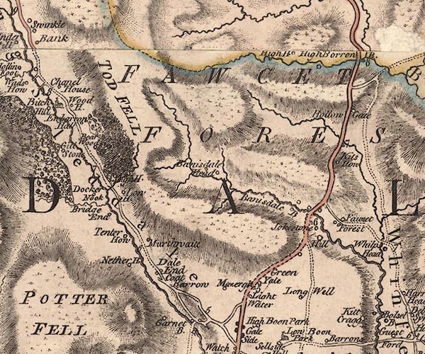 Pennant, published by Edward Harding, 98 Pall Mall, London, 1801. goto sourcePennant's Tour 1773, page 121 "I left Kendal, and not far from thence passed by the Spittle, once an hospital for lepers, ... A little beyond I began to ascend the mountains: on the left is the narrow deep valley of Long Sladale, ... for a long space the road lies in the midst of black and dreary mountains. I rode very near to Shap, [and turned off to Orton] ..." |