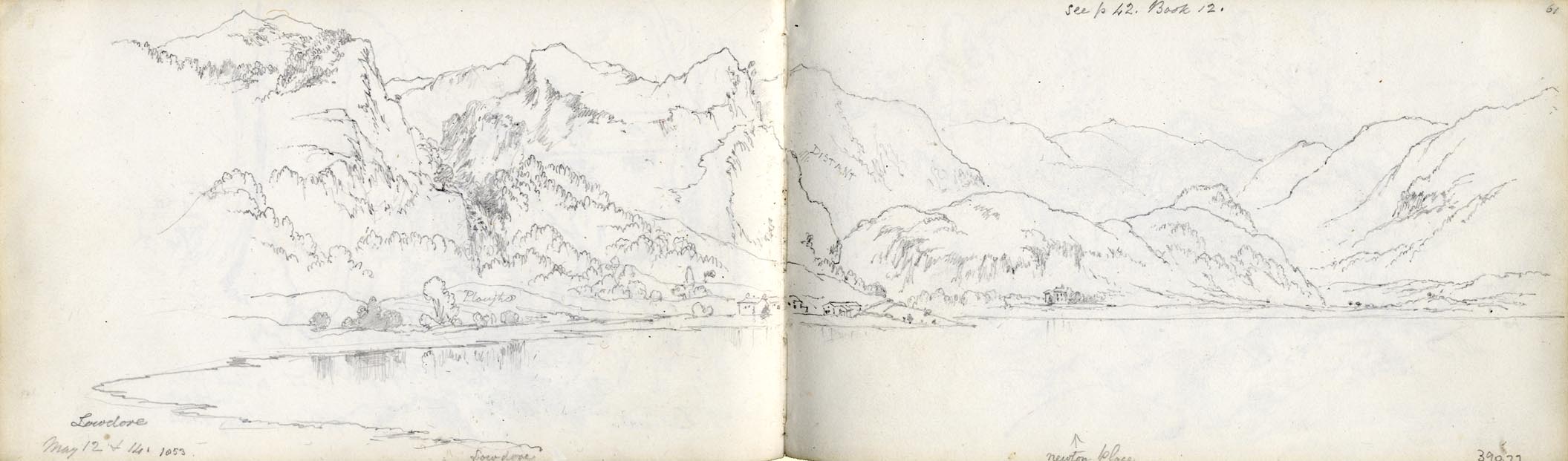 Drawing, pencil, Lowdore, Borrowdale, Cumberland, by Theophilus Lindsey Aspland, 12 May 1853.