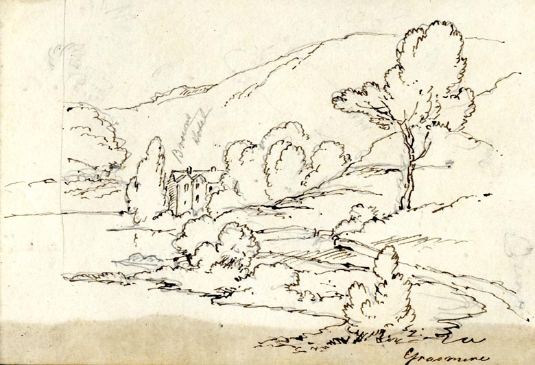 Drawing, ink, the Prince of Wales Hotel, Grasmere, Westmorland, by Theophilus Lindsey Aspland, 1853.