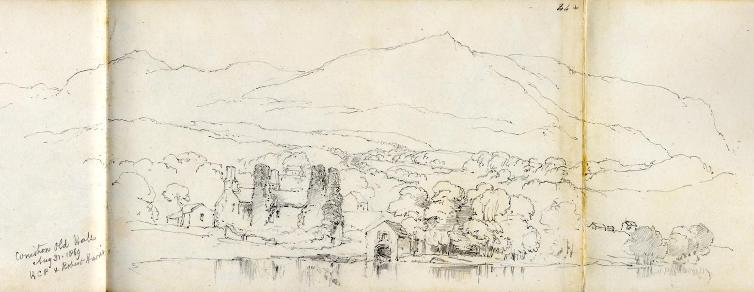Drawing, pencil, Coniston Hall, Coniston, Lancashire, by Theophilus Lindsey Aspland, 31 August 1869.