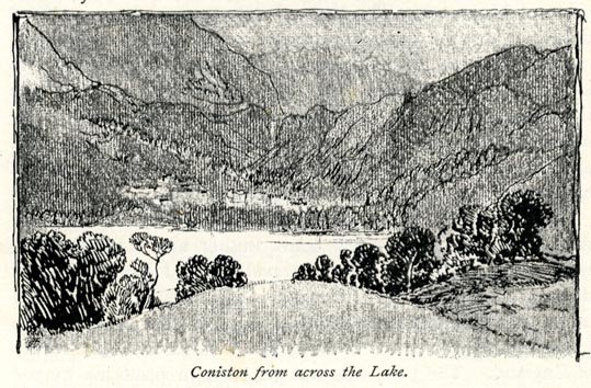 Print, uncoloured lithograph, Coniston from across the Lake, Coniston, Cumberland, by Joseph Pennell, published by Macmillan and Co, London, 1901.