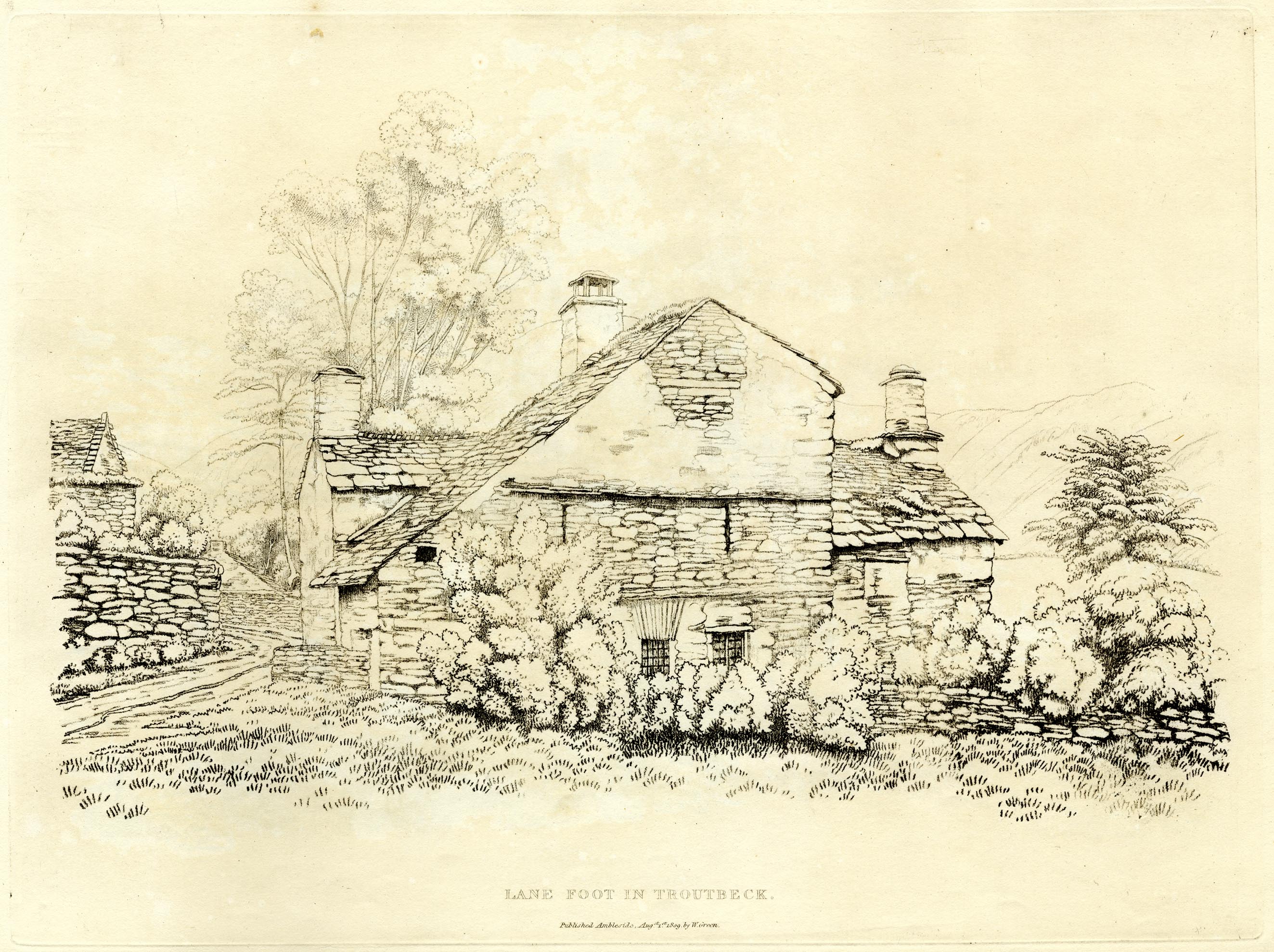 Print, soft ground etching, Lane Foot in Troutbeck, Westmorland, by William Green, published by William Green, Ambleside, Westmorland, and Longman, Hurst, Rees and Orme, Paternoster Row, London, 1809.