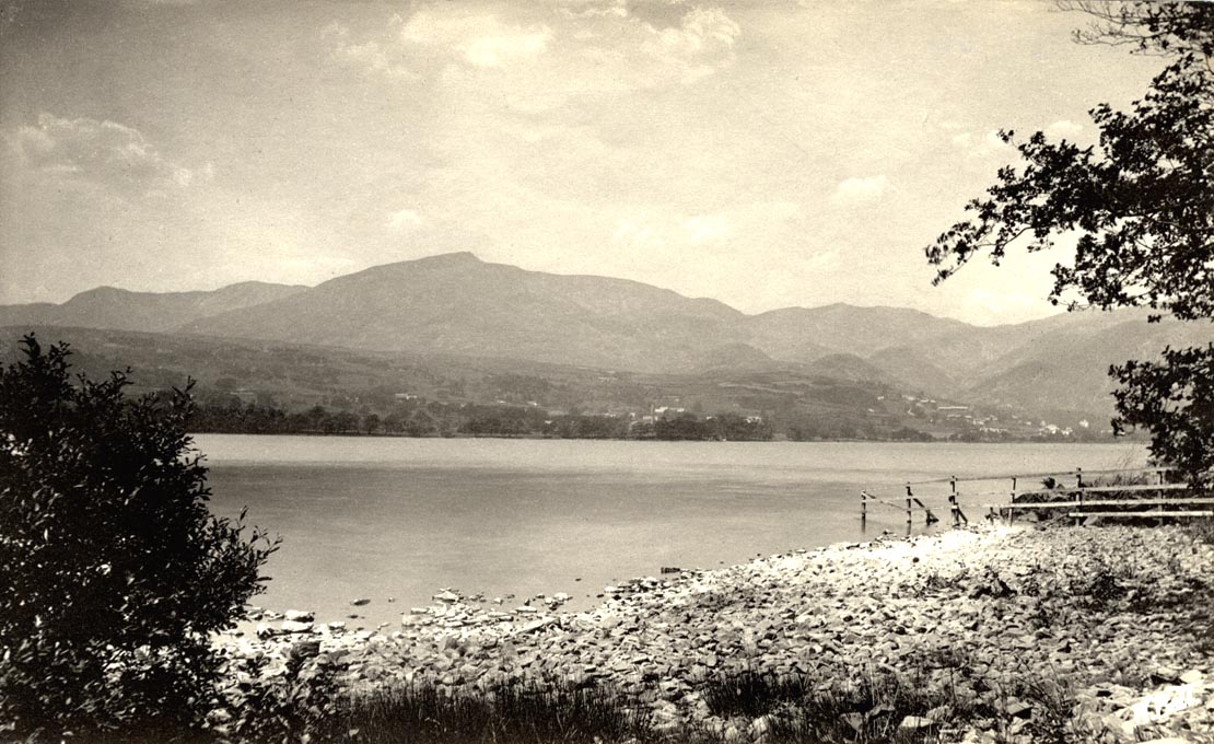 Photograph, black and white, Coniston Water, from near Brantwood, Coniston, Lancashire, by Herbert Bell, photographer, Ambleside, Westmorland, 1880s-1940s.