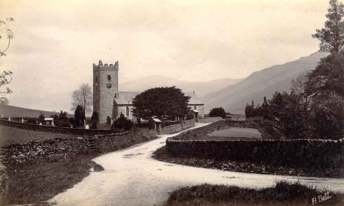 Photograph, sepia, Jesus Church, Troutbeck, Westmorland, by Herbert Bell, photographer, Ambleside, Westmorland, 1880s-1940s.