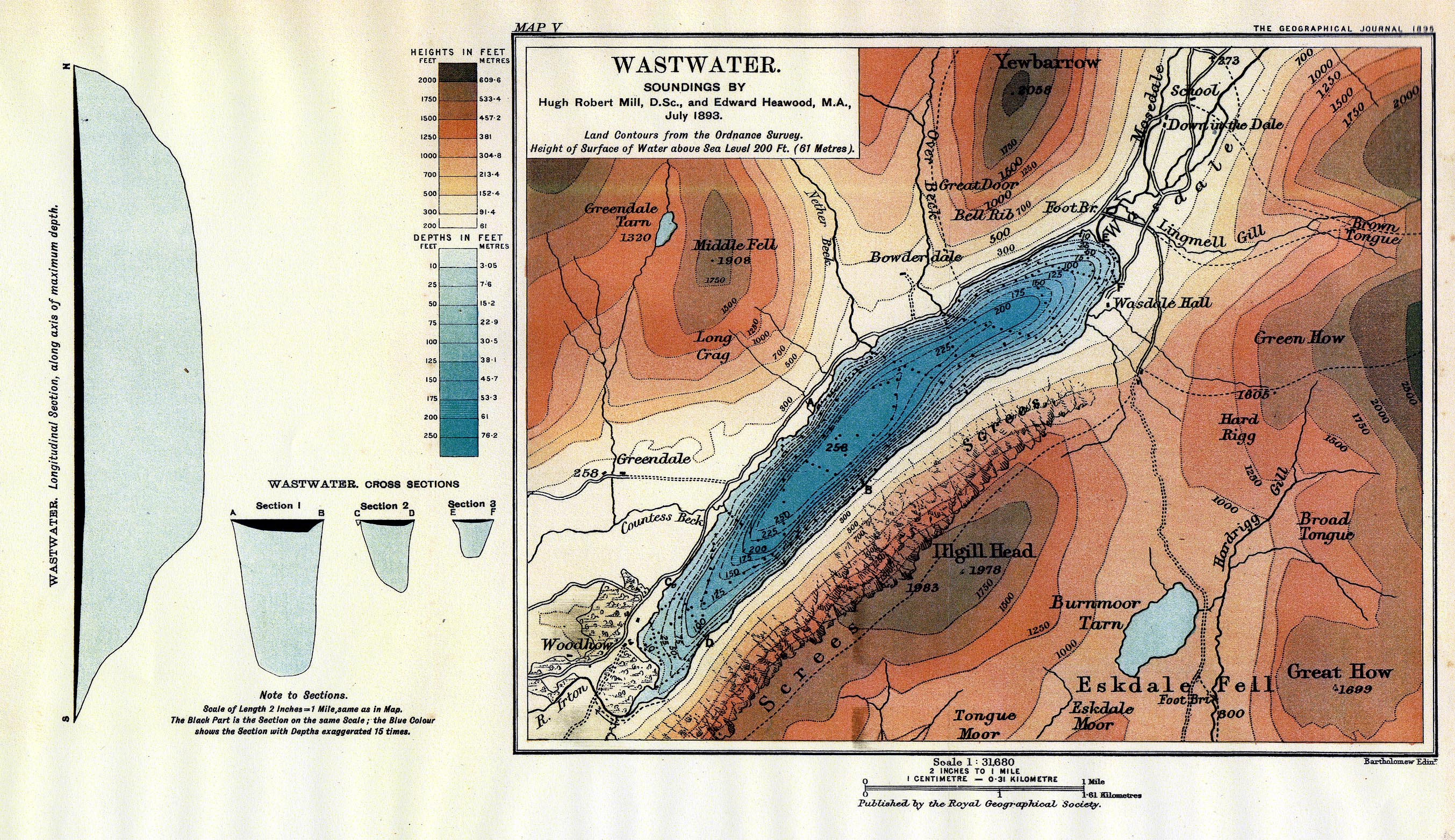 Map, Wastwater, scale 2 inches to 1 mile, with soundings by Hugh