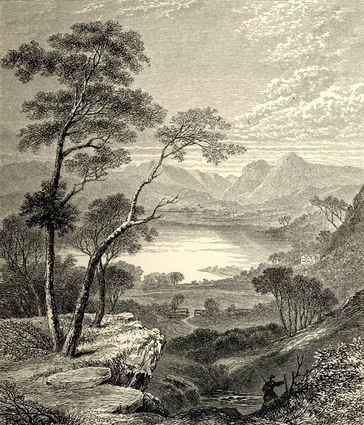 Print, uncoloured engraving, Head of Windermere, from Skelgill,