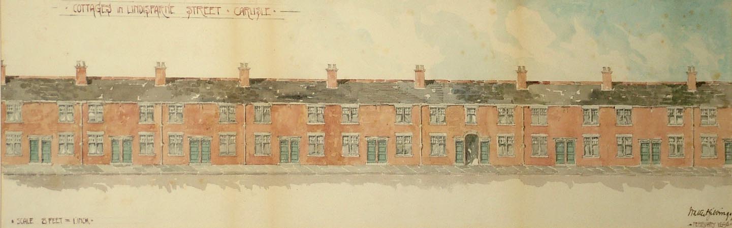 Drawing, Cottages in Lindisfarne Street, Carlisle, Cumberland, by Walter P Gibbings, 1896.