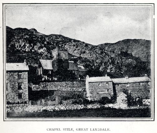 Print, halftone photograph, Chapel Stile, Great Langdale, Westmorland, published by C Arthur Pearson, Henrietta Street, London, 1900s.