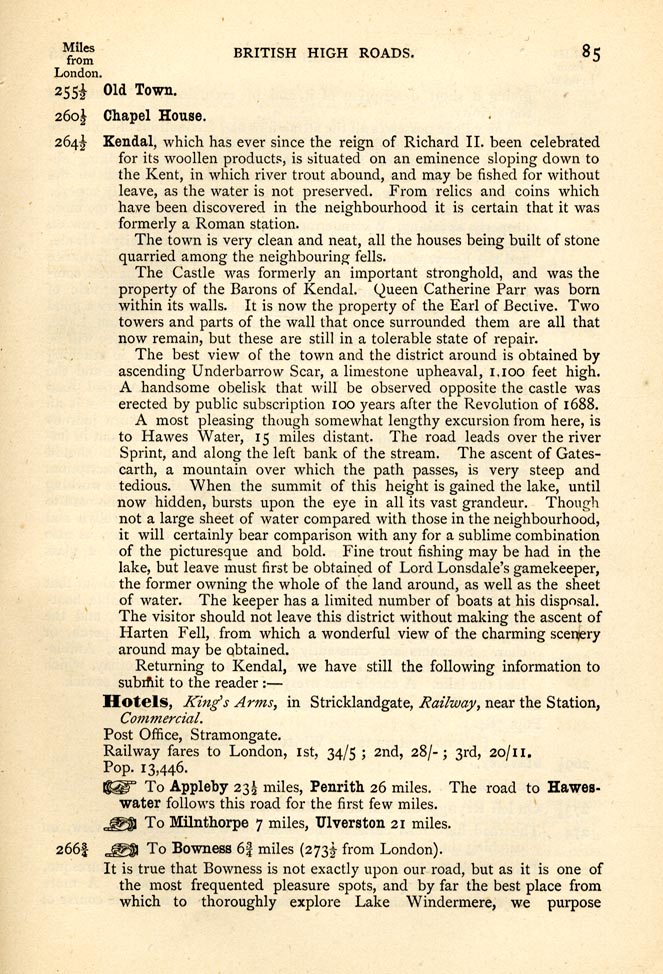 Kendal, Ambleside, Westmorland; then Keswick, Cockermouth to