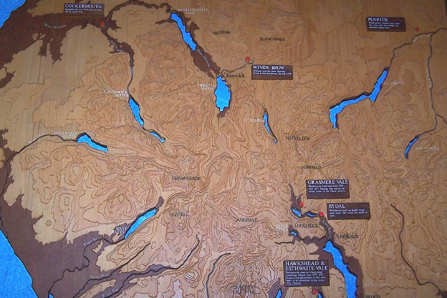 Relief model, map, wood in layers, Wordsworth's Lake District, scale nominally 1 inch to 1 mile, made about 1981?